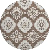8' Pink And Gray Striped Washable Round Rug With UV Protection