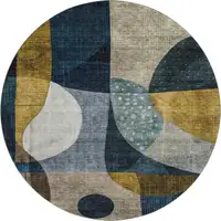 8' Pink And Ivory Abstract Washable Round Rug With UV Protection