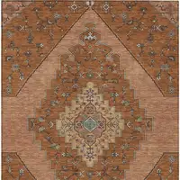 8' Pink And Ivory Round Geometric Washable Indoor Outdoor Area Rug