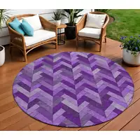 8' Pink And Silver Round Striped Washable Indoor Outdoor Area Rug