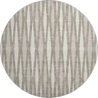 8' Pink Ivory And Gray Striped Washable Round Rug With UV Protection