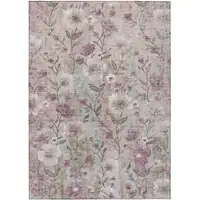8' Plum And Beige Round Abstract Washable Indoor Outdoor Area Rug