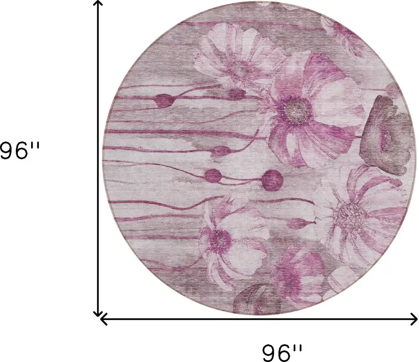 This 8-foot plum mauve and pink round floral washable indoor outdoor area rug, is a great way to add warmth to a room. This geometric round shaped rug features a floral pattern in plum, mauve, and pink that combines a good looking print with a unique and updated shape. The mix of shape, color, and design gives this rug refreshing visual interest. Ideal for outdoor spaces or high traffic areas with kids and pets, this rug is made from heavy duty polyester that is stain resistant to help repel water, dirt, and stains. Versatile in use, durable, and easy to maintain, this rug is an ideal solution to add a decorative and inviting touch to your indoor or outdoor space. 96-inch h x 96-inch w x 0.19-inch d.