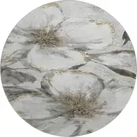 8' Purple And Ivory Abstract Washable Round Rug With UV Protection