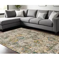 8' Purple And Ivory Abstract Washable Round Rug With UV Protection