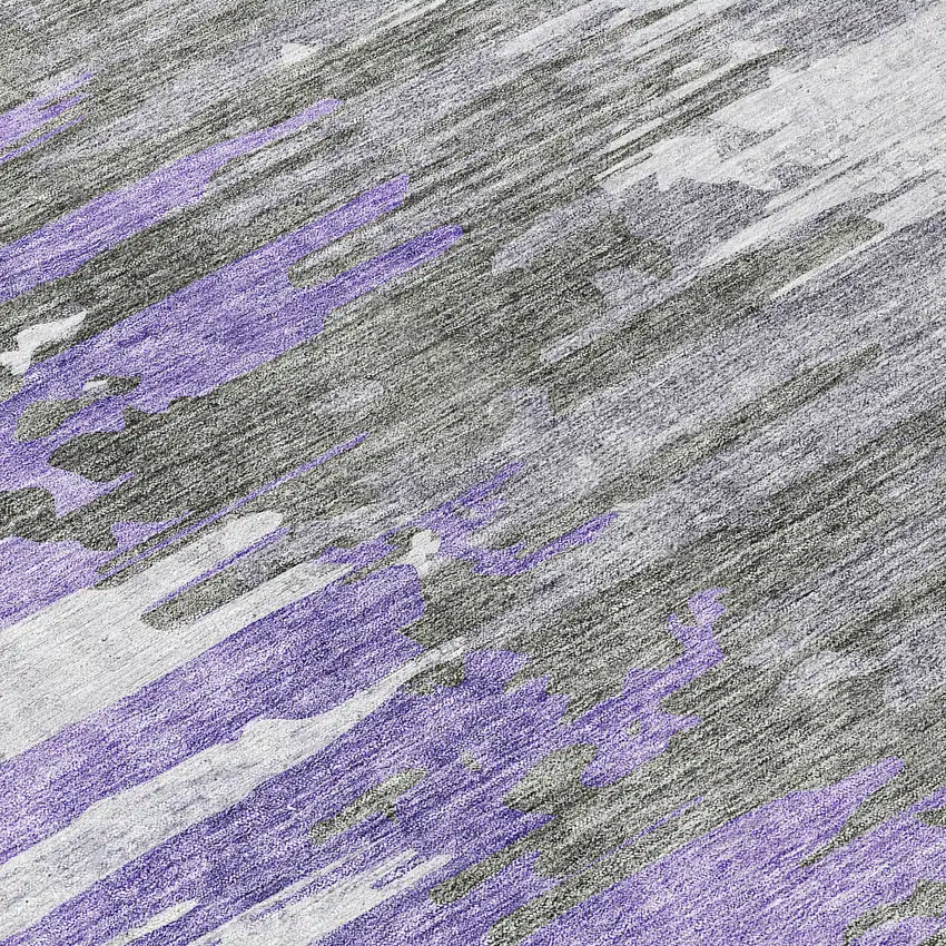 Add some artistry to your room with this 8-foot purple ivory and charcoal round abstract washable indoor outdoor area rug. This geometric round shaped rug features a abstract pattern in purple, ivory, and charcoal that combines a good looking print with a unique and updated shape. The mix of shape, color, and design gives this rug refreshing visual interest. Ideal for outdoor spaces or high traffic areas with kids and pets, this rug is made from heavy duty polyester that is stain resistant to help repel water, dirt, and stains. Makes a great way to dress up your patio, porch, or poolside, but also works well as a durable and easy to maintain option in the kitchen, family room, or mudroom. 96-inch h x 96-inch w x 0.19-inch d.