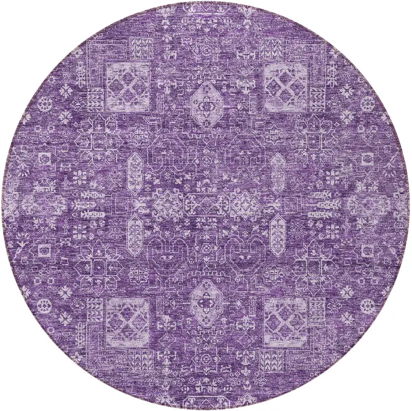 Add some artistry to your room with this 8-foot purple lilac and lavender round oriental washable indoor outdoor area rug. This geometric round shaped rug features a oriental pattern in purple, lilac, and lavender that combines a good looking print with a unique and updated shape. The mix of shape, color, and design gives this rug refreshing visual interest. Ideal for outdoor spaces or high traffic areas with kids and pets, this rug is made from heavy duty polyester that is stain resistant to help repel water, dirt, and stains. Versatile in use, durable, and easy to maintain, this rug is an ideal solution to add a decorative and inviting touch to your indoor or outdoor space. 96-inch h x 96-inch w x 0.19-inch d.