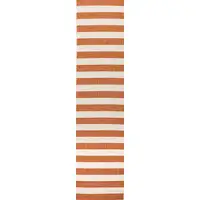 8' Red And Beige Geometric Indoor Outdoor Runner Rug