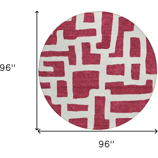 8' Red And Ivory Round Abstract Washable Indoor Outdoor Area Rug
