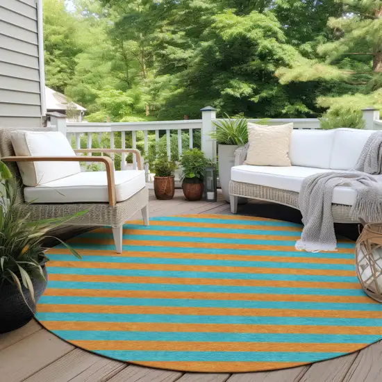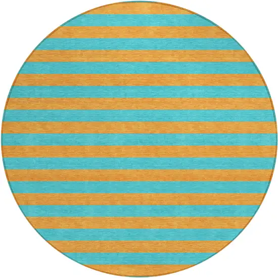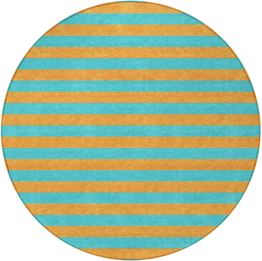8' Round Aqua Round Striped Washable Non Skid Indoor Outdoor Area Rug