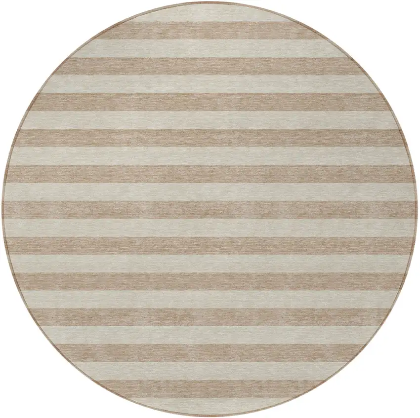 8' Round Beige Round Striped Washable Non Skid Indoor Outdoor Area Rug