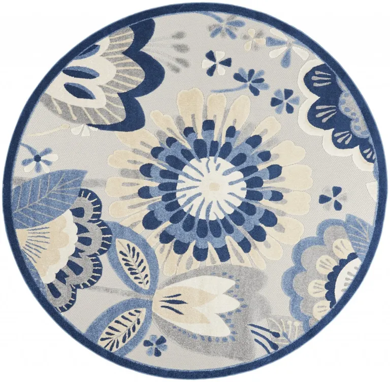It's time to elevate your space and create an atmosphere that reflects your unique personality. Order our 8 Round Blue and Gray Indoor/Outdoor Area Rug now and experience the difference it can make in your home.