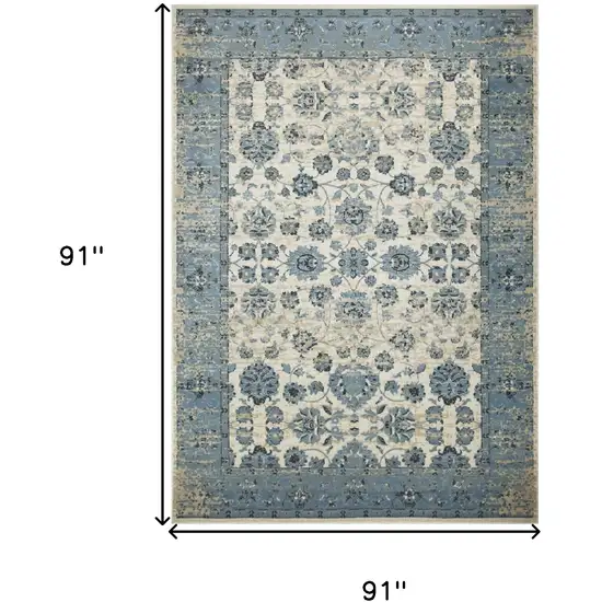 Investing in the 8' Round Blue Ivory Distressed Oriental Area Rug means investing in timeless quality that will accompany you through years of memories. Handcrafted with precision, this rug is made to withstand the test of time. Its intricate design is expertly woven with high-quality materials, ensuring that it remains vibrant and beautiful for years to come.