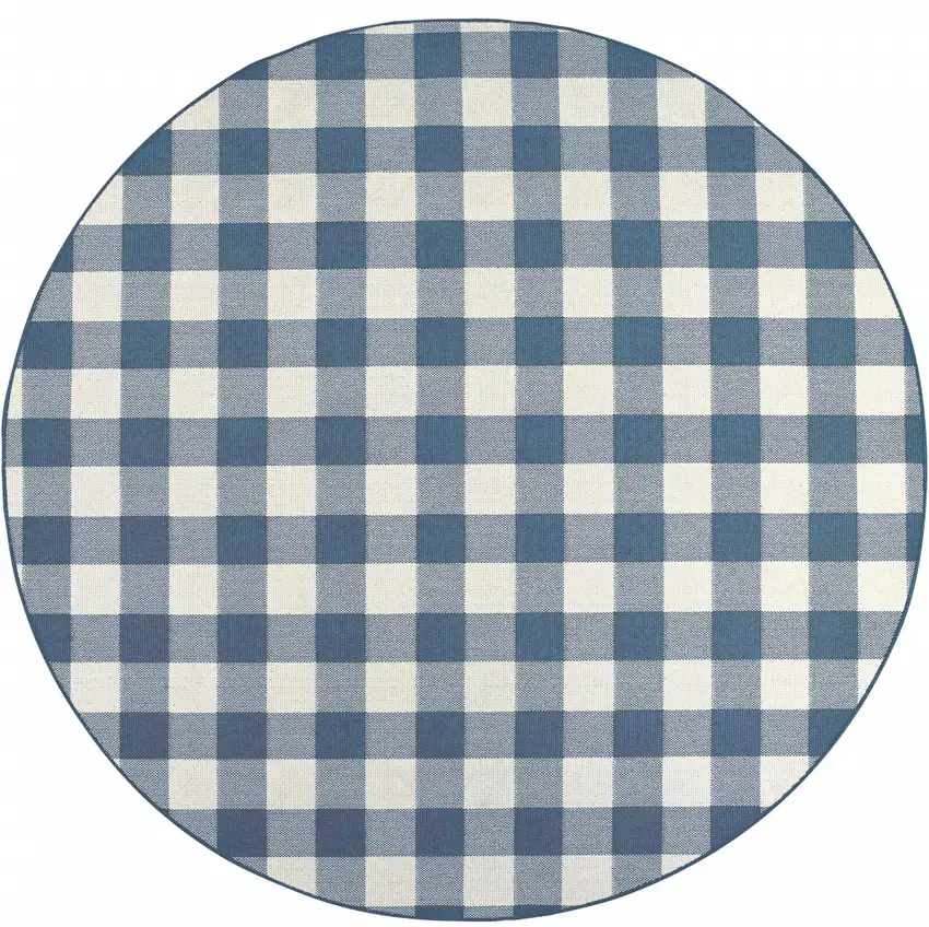 8' Round Blue Round Geometric Stain Resistant Indoor Outdoor Area Rug