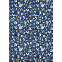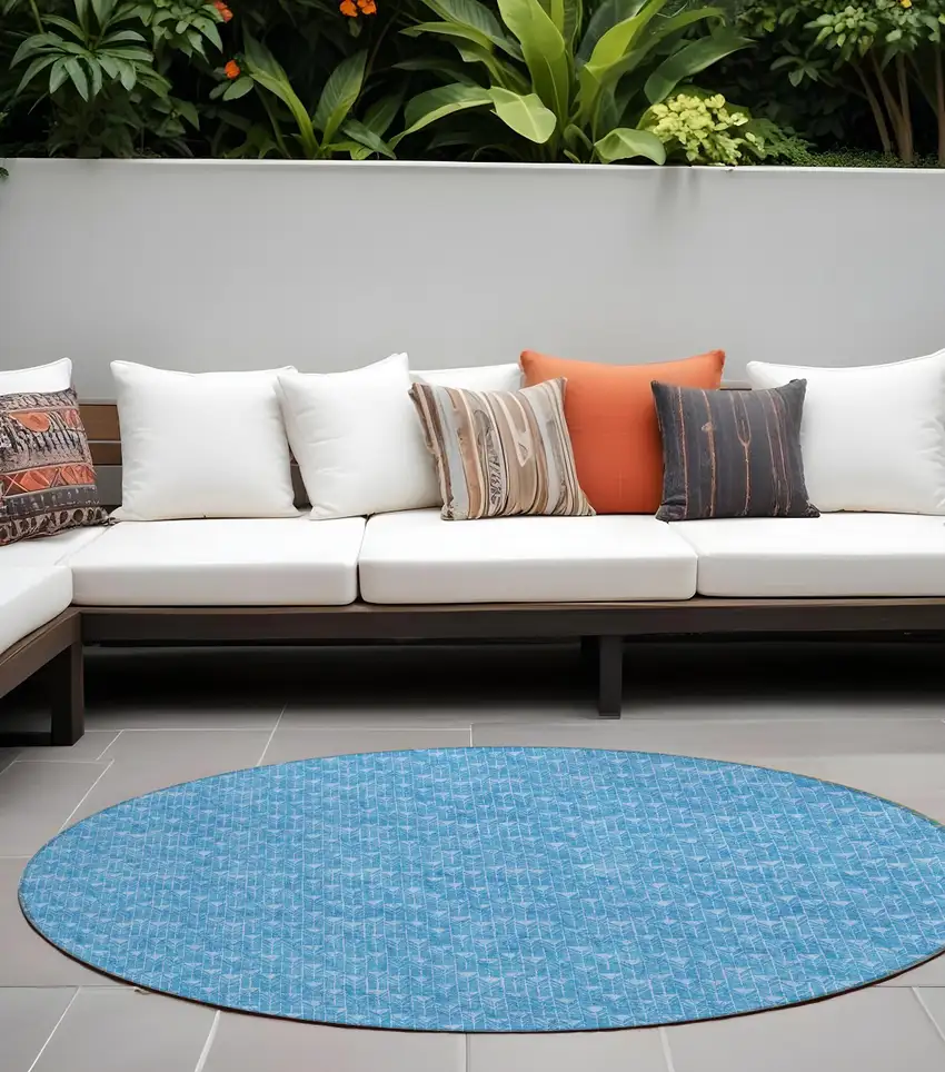 8' Round Blue Round Geometric Washable Non Skid Indoor Outdoor Area Rug
