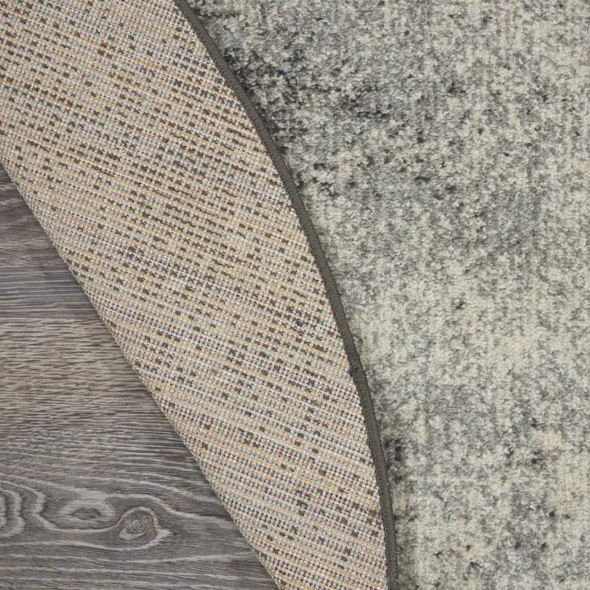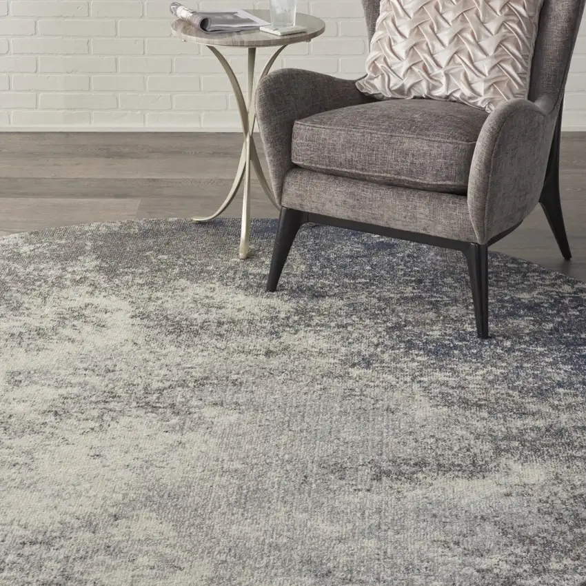 Indulge in the plush comfort and artistic detail of this round rug. The blend of charcoal and ivory colors provide a contemporary look to any space.