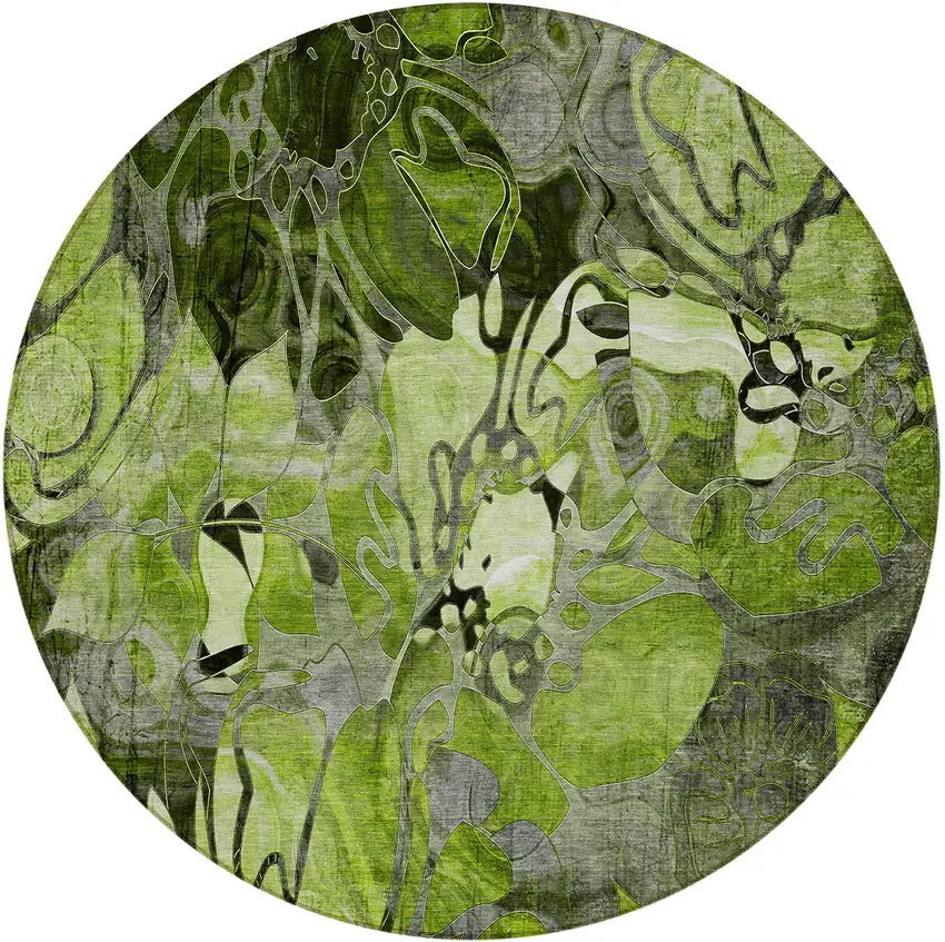 Add great coloration and comfortable texture to your space with this 8-foot round fern green and gray round floral washable stain resistant non skid indoor outdoor area rug. This geometric round shaped rug features a floral pattern in fern green and gray that combines a good looking print with a unique and updated shape. The mix of shape, color, and design gives this rug refreshing visual interest. Ideal for spaces with kids and pets, this rug is stain resistant to help repel stains and spilled liquids. Place this area rug against a hardwood or tile floor and it will enliven your living space with style and sophistication. 96-inch H x 96-inch W x 0.19-inch D