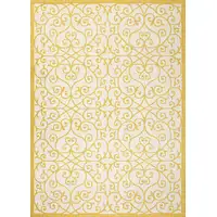 8' Round Gold and White Round Geometric Washable Non Skid Indoor Outdoor Area Rug