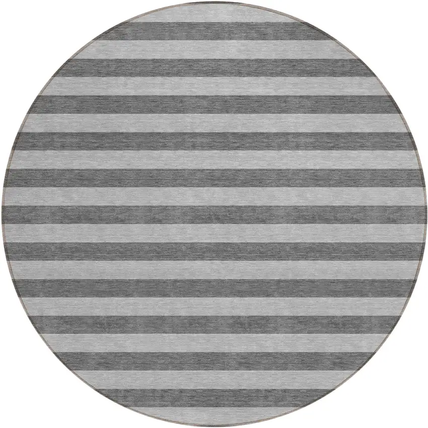 8' Round Gray and White Round Striped Washable Non Skid Indoor Outdoor Area Rug