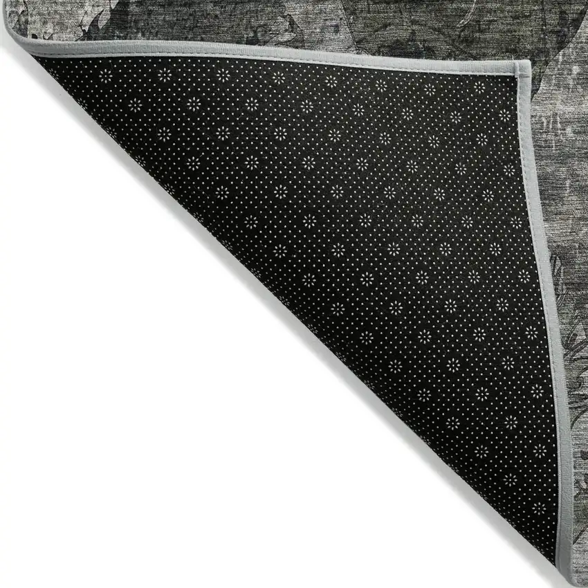 This 8-foot round gray dark green and black round floral washable stain resistant non skid indoor outdoor area rug, is a great way to add warmth to a room. This geometric round shaped rug features a floral pattern in gray dark green and black that combines a good looking print with a unique and updated shape. The mix of shape, color, and design gives this rug refreshing visual interest. Ideal for spaces with kids and pets, this rug is stain resistant to help repel stains and spilled liquids. Area rugs help to give warmth and sense of home to your space. 96-inch H x 96-inch W x 0.19-inch D