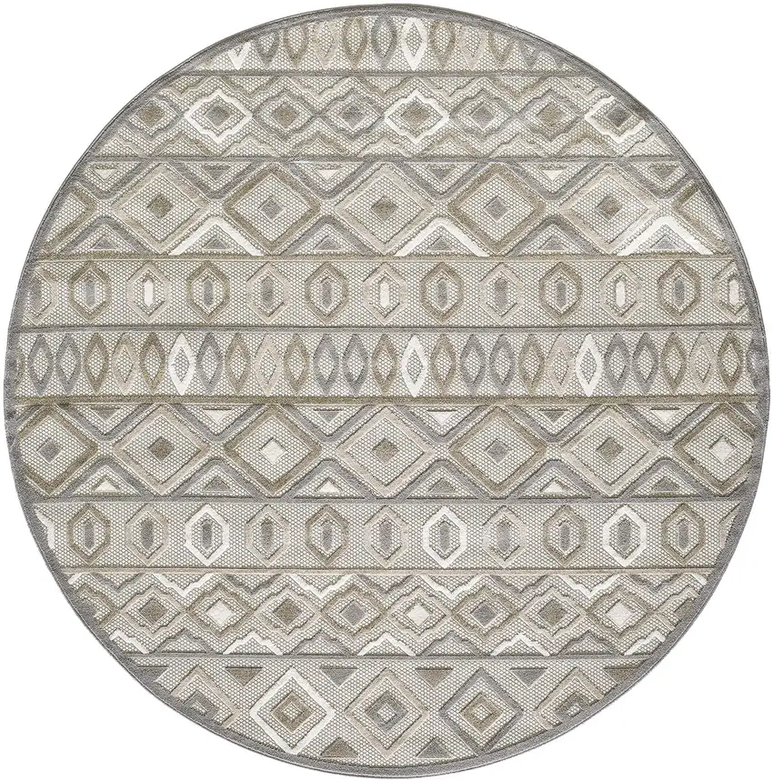 8' Round Gray Ivory Aztec Pattern Indoor Outdoor Area Rug