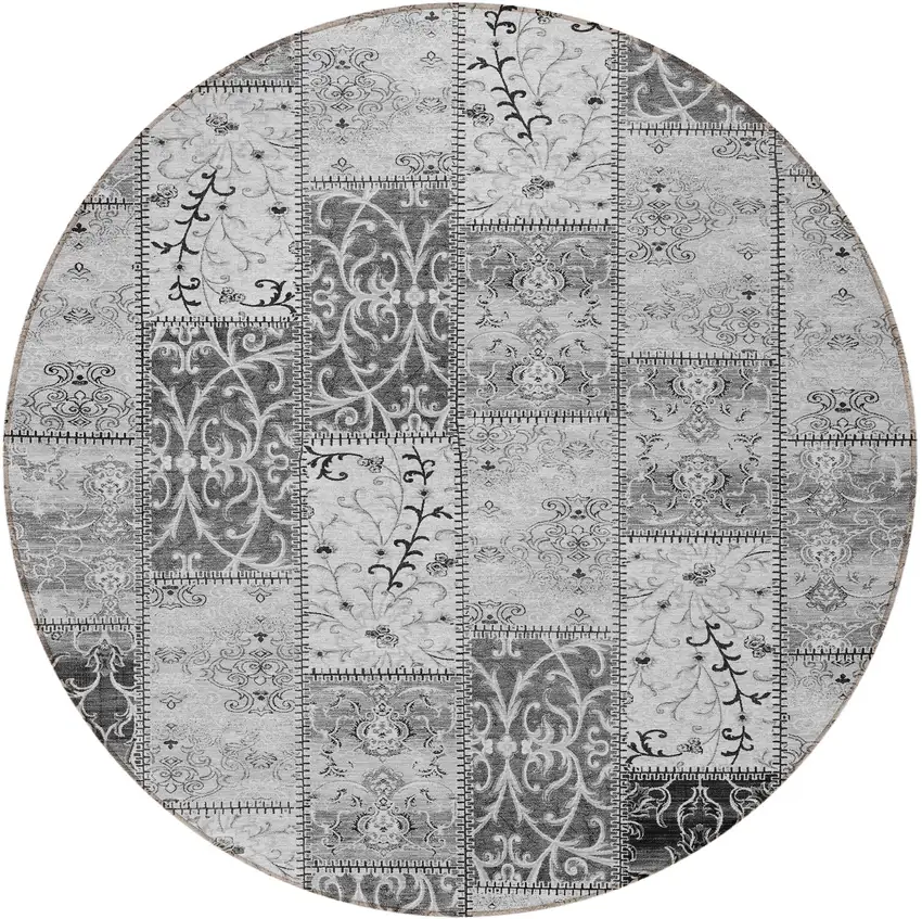 8' Round Gray Round Patchwork Washable Non Skid Indoor Outdoor Area Rug