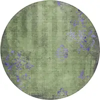 8' Round Green and White Round Striped Washable Non Skid Indoor Outdoor Area Rug