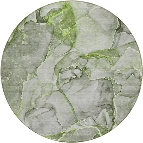 8' Round Green Round Abstract Washable Non Skid Indoor Outdoor Area Rug
