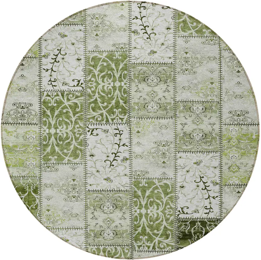 Add great coloration and comfortable texture to your space with this 8-foot round green round patchwork washable stain resistant non skid indoor outdoor area rug. This geometric round shaped rug features a patchwork pattern in green that combines a good looking print with a unique and updated shape. The mix of shape, color, and design gives this rug refreshing visual interest. Ideal for spaces with kids and pets, this rug is stain resistant to help repel stains and spilled liquids. Area rugs help to give warmth and sense of home to your space. 96-inch H x 96-inch W x 0.19-inch D