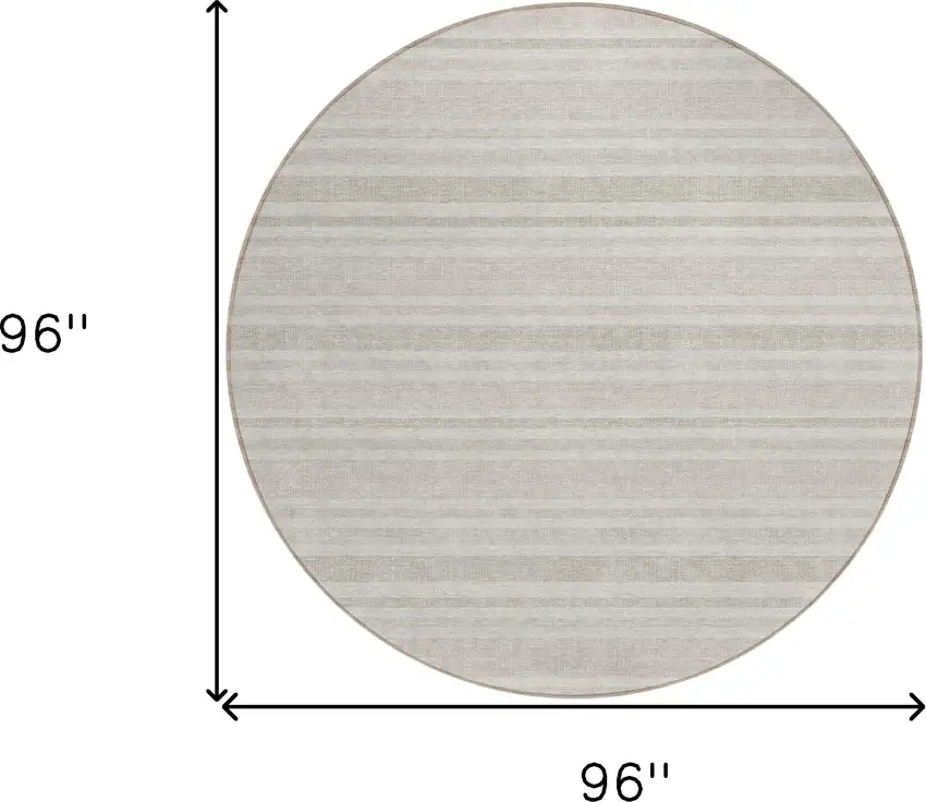 8' Round Ivory Round Striped Washable Non Skid Indoor Outdoor Area Rug