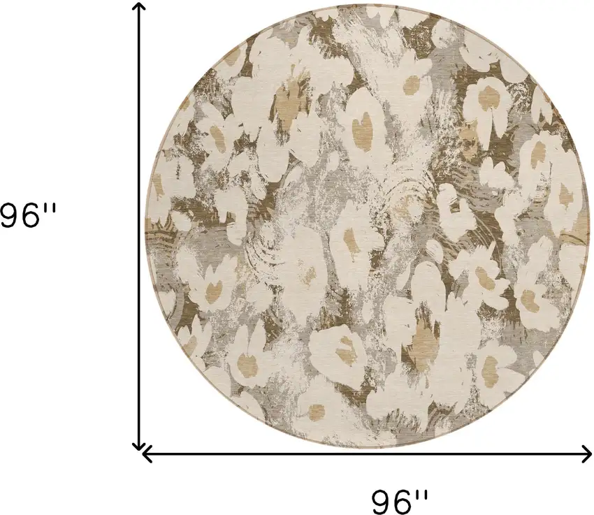 8' Round Khaki Round Floral Washable Non Skid Indoor Outdoor Area Rug