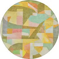 8' Round Navy Round Geometric Stain Resistant Indoor Outdoor Area Rug