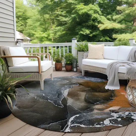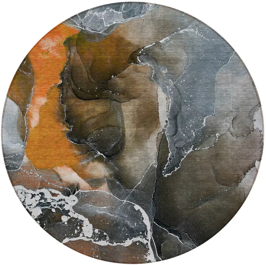 8' Round Orange Round Abstract Washable Non Skid Indoor Outdoor Area Rug