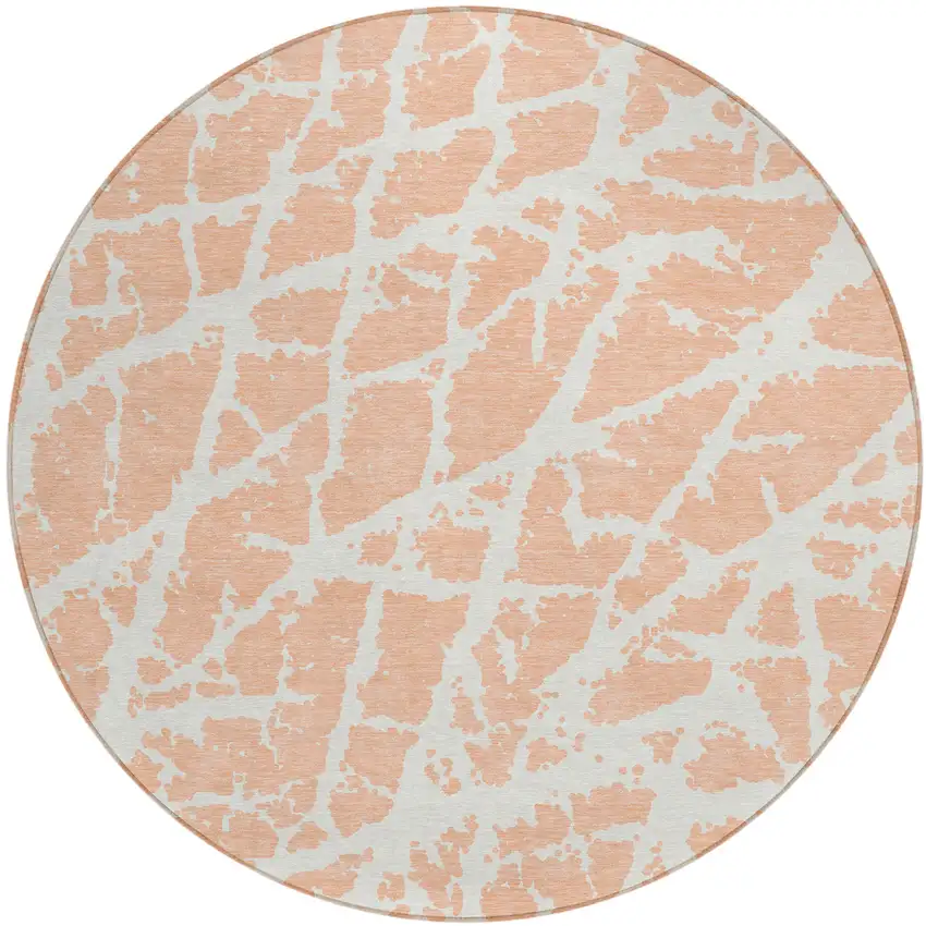8' Round Peach and Ivory Round Abstract Washable Non Skid Indoor Outdoor Area Rug