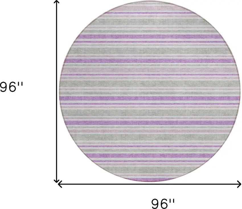 8' Round Pearl Round Striped Washable Non Skid Indoor Outdoor Area Rug