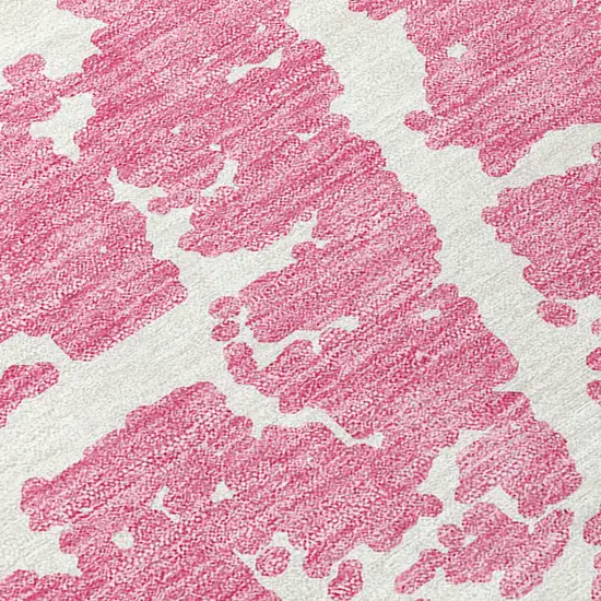 8' Round Pink and Ivory Round Abstract Washable Non Skid Indoor Outdoor Area Rug