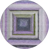 Add some artistry to your room with this 8-foot round purple and green round floral washable stain resistant non skid indoor outdoor area rug. This geometric round shaped rug features a floral pattern in purple and green that combines a good looking print with a unique and updated shape. The mix of shape, color, and design gives this rug refreshing visual interest. Ideal for spaces with kids and pets, this rug is stain resistant to help repel stains and spilled liquids. Area rugs help to give warmth and sense of home to your space. 96-inch H x 96-inch W x 0.19-inch D