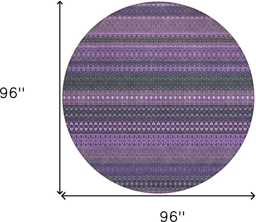Add some artistry to your room with this 8-foot round purple round striped washable stain resistant non skid indoor outdoor area rug. This geometric round shaped rug features a striped pattern in purple that combines a good looking print with a unique and updated shape. The mix of shape, color, and design gives this rug refreshing visual interest. Ideal for spaces with kids and pets, this rug is stain resistant to help repel stains and spilled liquids. Place this area rug against a hardwood or tile floor and it will enliven your living space with style and sophistication. 96-inch H x 96-inch W x 0.19-inch D