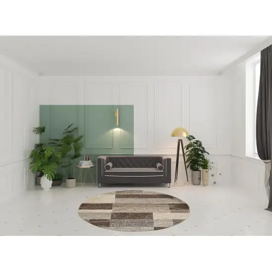 Slate Round Patchwork Power Loom Stain Resistant Area Rug