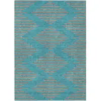 8' Round Teal Round Abstract Washable Non Skid Indoor Outdoor Area Rug
