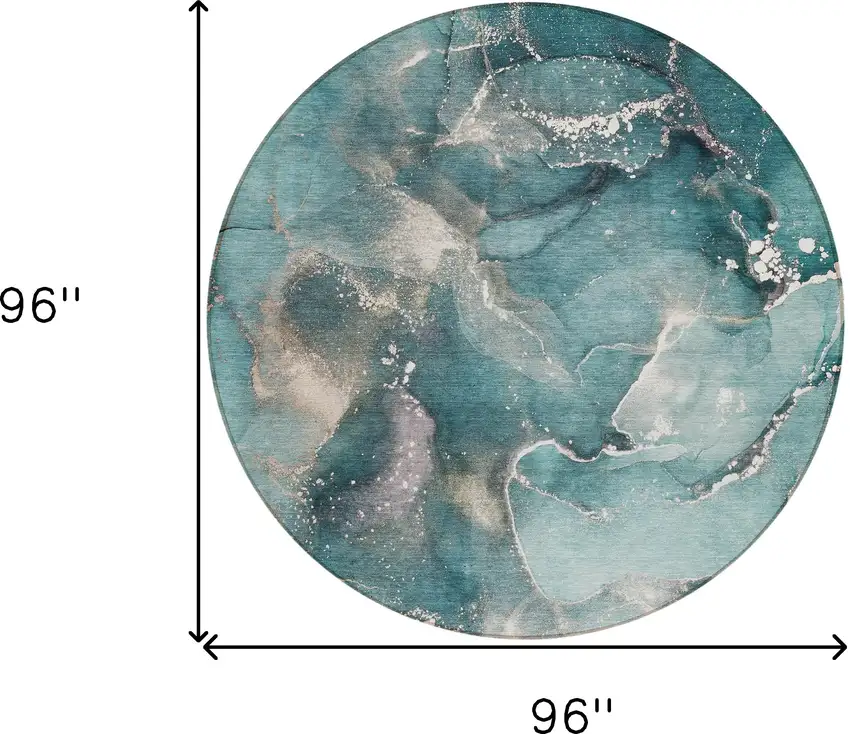 Add some artistry to your room with this 8-foot round teal round abstract washable stain resistant non skid indoor outdoor area rug. This geometric round shaped rug features a abstract pattern in teal that combines a good looking print with a unique and updated shape. The mix of shape, color, and design gives this rug refreshing visual interest. Ideal for spaces with kids and pets, this rug is stain resistant to help repel stains and spilled liquids. Place this area rug against a hardwood or tile floor and it will enliven your living space with style and sophistication. 96-inch H x 96-inch W x 0.19-inch D