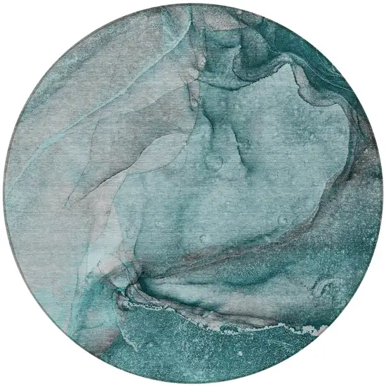 Set an inviting tone in your space with this 8-foot round teal round abstract washable stain resistant non skid indoor outdoor area rug. This geometric round shaped rug features a abstract pattern in teal that combines a good looking print with a unique and updated shape. The mix of shape, color, and design gives this rug refreshing visual interest. Ideal for spaces with kids and pets, this rug is stain resistant to help repel stains and spilled liquids. Area rugs help to give warmth and sense of home to your space. 96-inch H x 96-inch W x 0.19-inch D