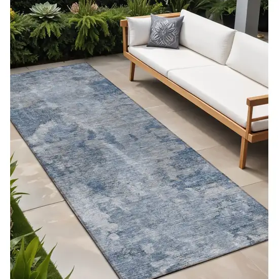 8' Runner Blue Abstract Washable Non Skid Indoor Outdoor Runner Rug