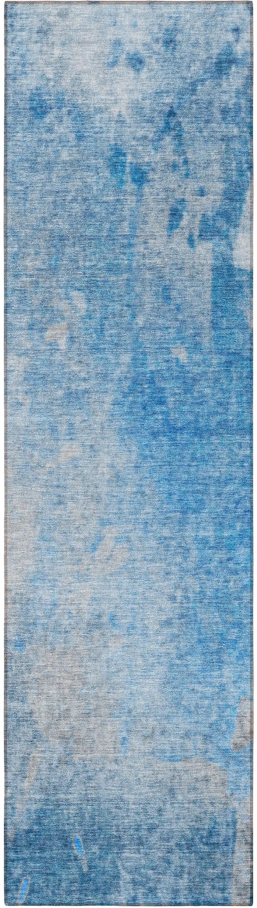 8' Runner Blue and Gray Abstract Washable Non Skid Indoor Outdoor Runner Rug
