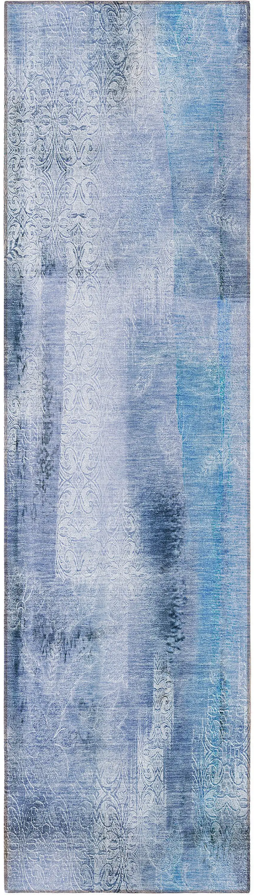 8' Runner Blue Washable Non Skid Indoor Outdoor Runner Rug