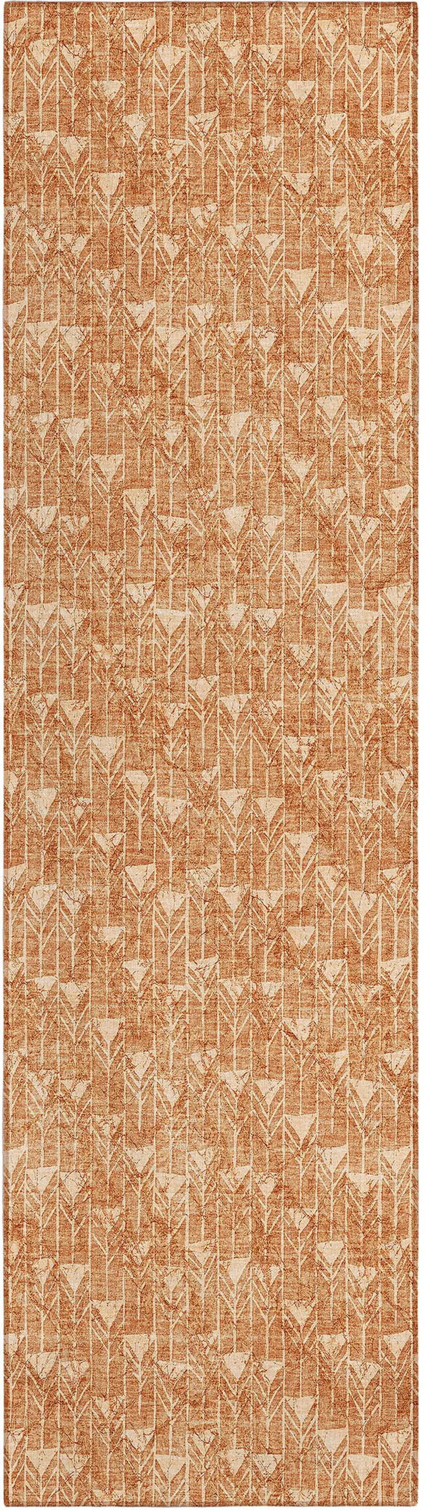 8' Runner Bronze Geometric Washable Non Skid Indoor Outdoor Runner Rug