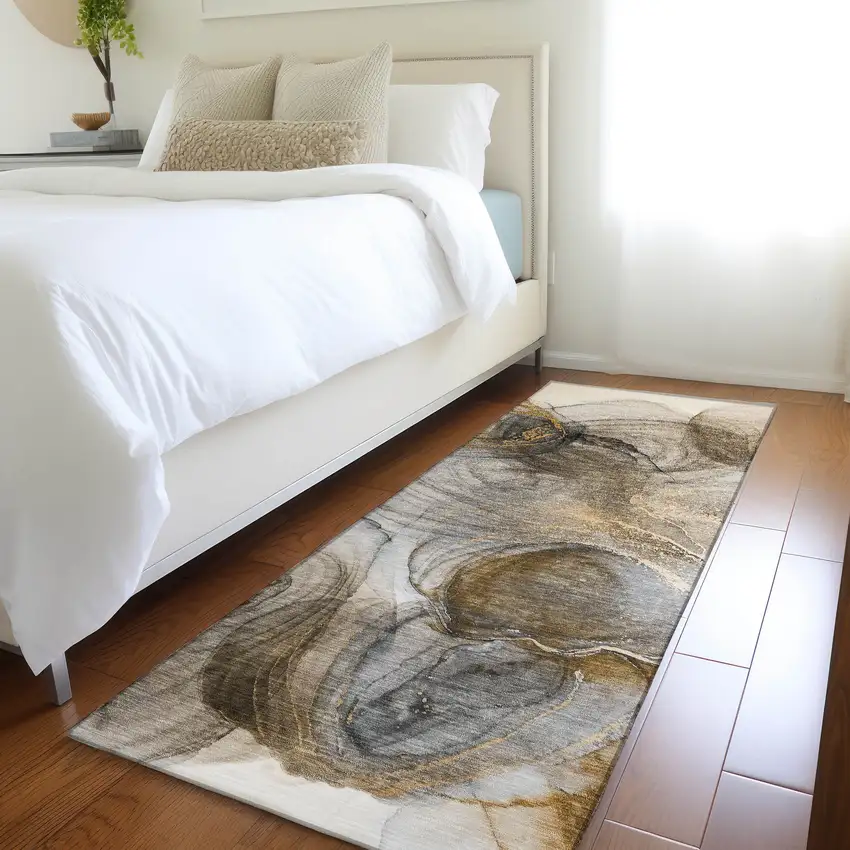 8' Runner Brown Abstract Washable Non Skid Indoor Outdoor Runner Rug