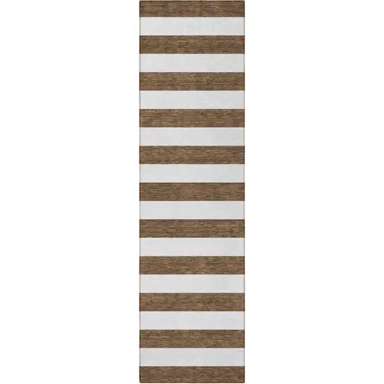 8' Runner Chocolate Striped Washable Non Skid Indoor Outdoor Runner Rug