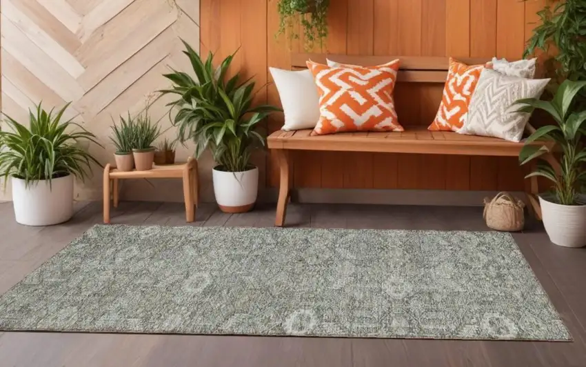 8' Runner Cream and Tan Floral Washable Non Skid Indoor Outdoor Runner Rug