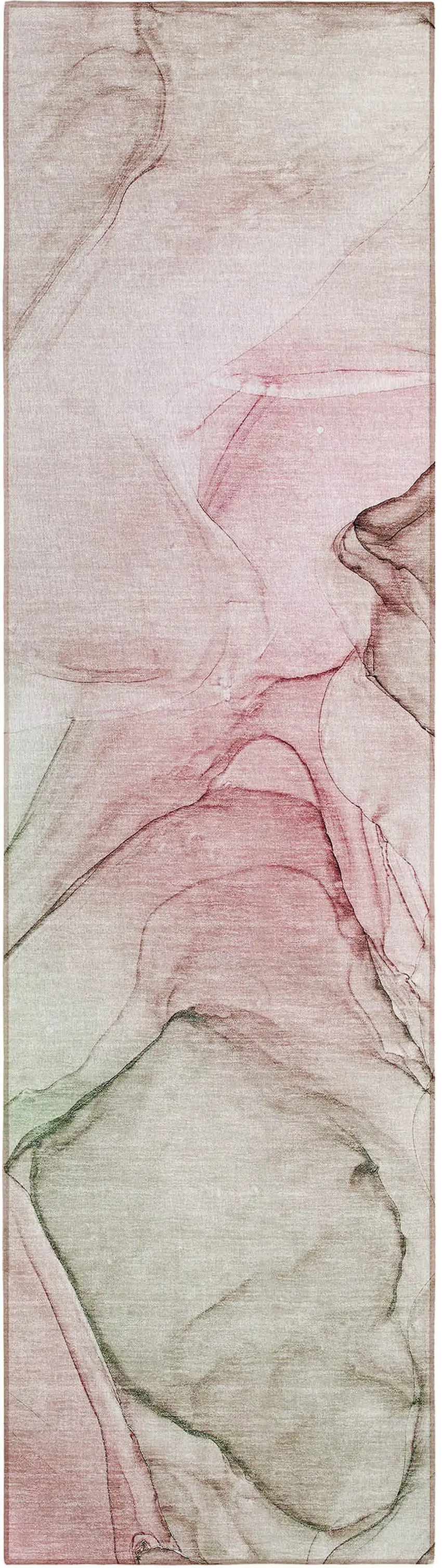 8' Runner Gray and Pink Abstract Washable Non Skid Indoor Outdoor Runner Rug